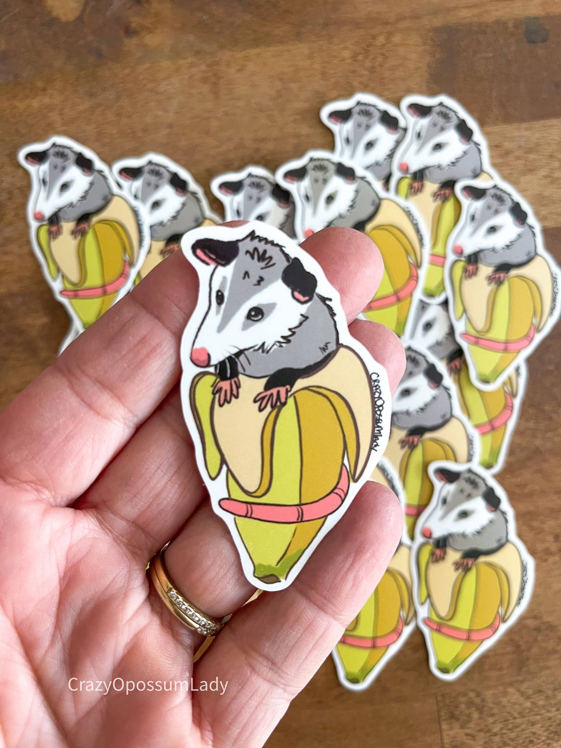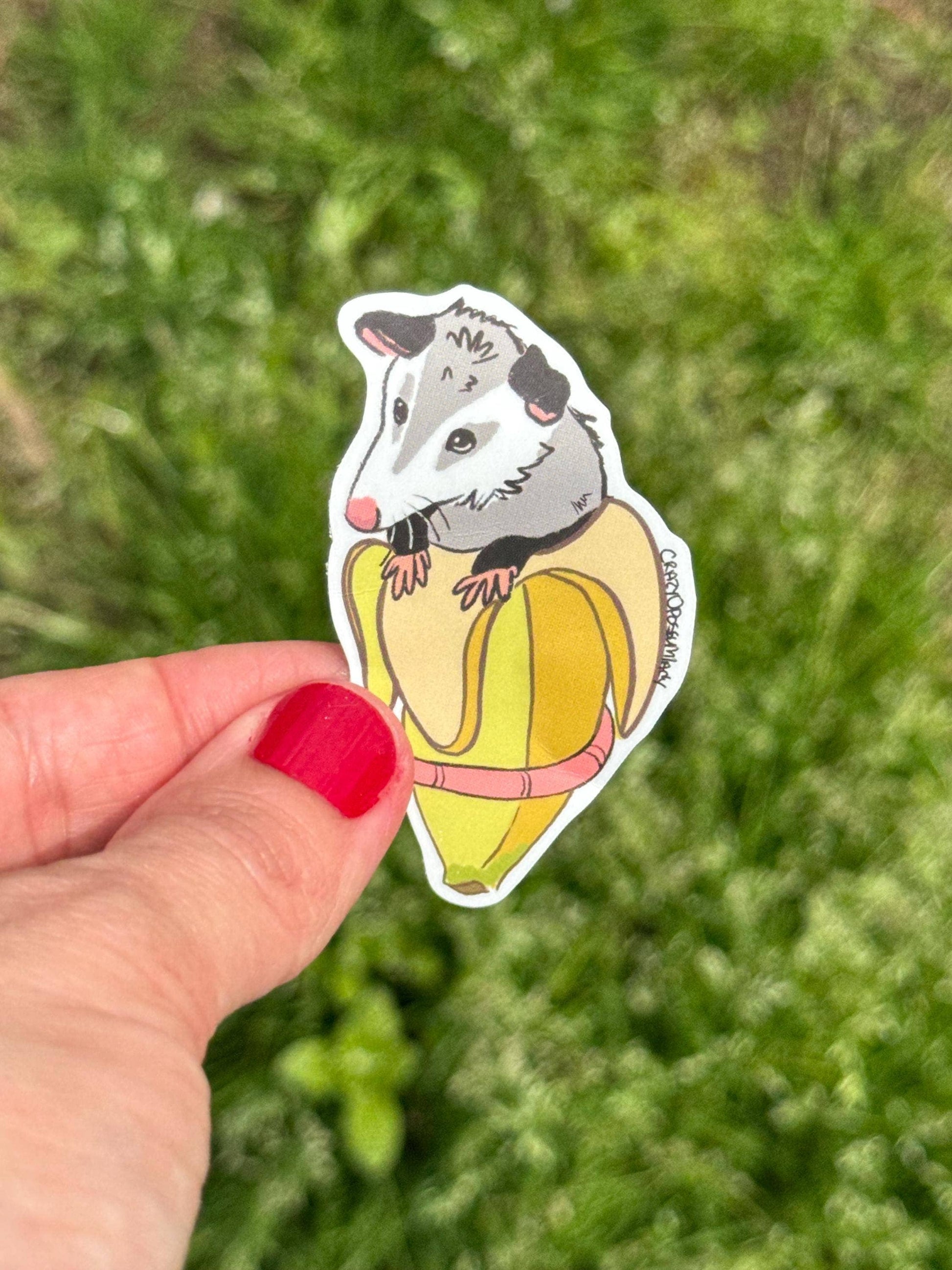 Banana Opossum Vinyl Sticker
